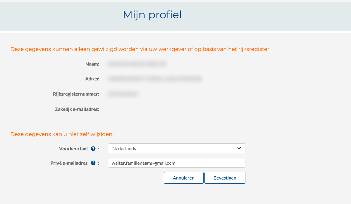 When an employee logs into mygroupinsurance.vivium.be for the first time, we ask him/her for his/her private e-mail address. He/she can also decide to enter this later. Afterwards, he/she can change this at any time via 'My profile' in mygroupinsurance.vivium.be.